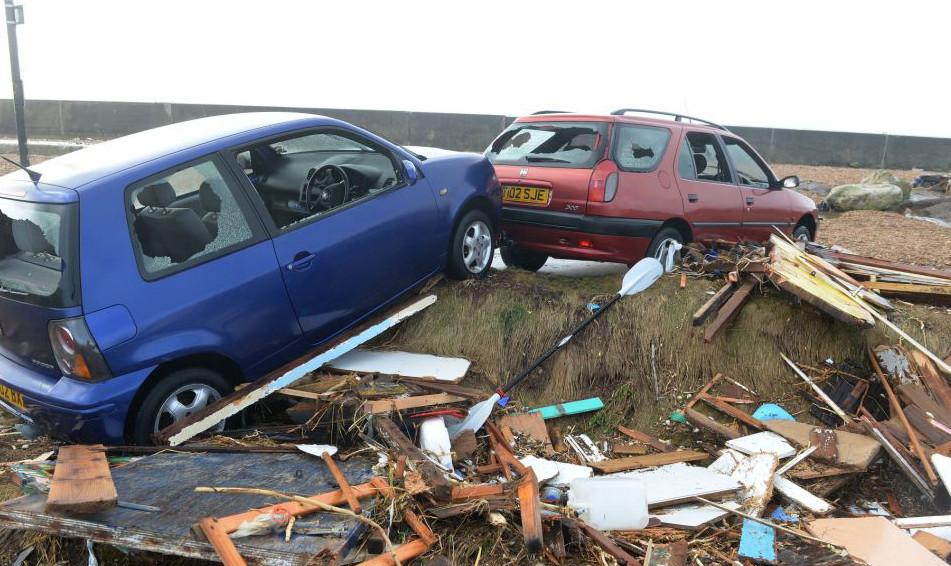 ολόκληρη τη Βρετανία, με ξεριζωμένα δέντρα και φερτά υλικά να
