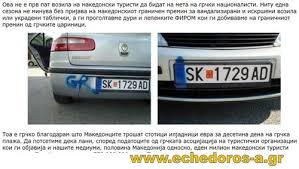 προκλητικές πινακίδες που φέρουν την ένδειξη ”ΜΚ” (Μακεδονία)…Παρόλο που στα τελωνεία οι υπάλληλοί μας κολλούν το διακριτικό αυτοκόλλητο στο οποίο αναφέρεται ότι η Ελλάδα δεν αναγνωρίζει τη συγκεκριμένη ένδειξη, οι περισσότεροι Σλαβοσκοπιανοί λίγο μετά τα σύνορα το ξεκολλούν επιδεικτικά.