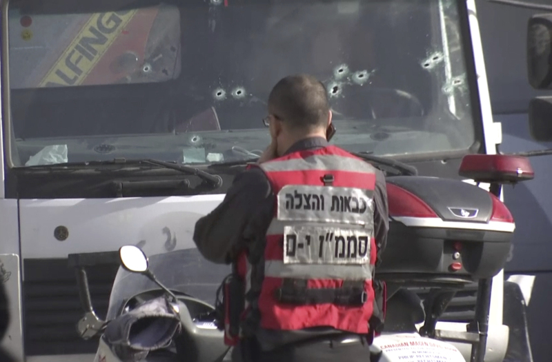 Ισραηλινά ΜΜΕ κάνουν λόγο για τρομοκρατική επίθεση. Ο δράστης είναι Παλαιστίνιος και κατάγεται απ' τη γειτονική συνοικία Τζαμπέλ Μουμπαμπέρ της ανατολικής Ιερουσαλή, όπως μετέδωσε η τηλεόραση.