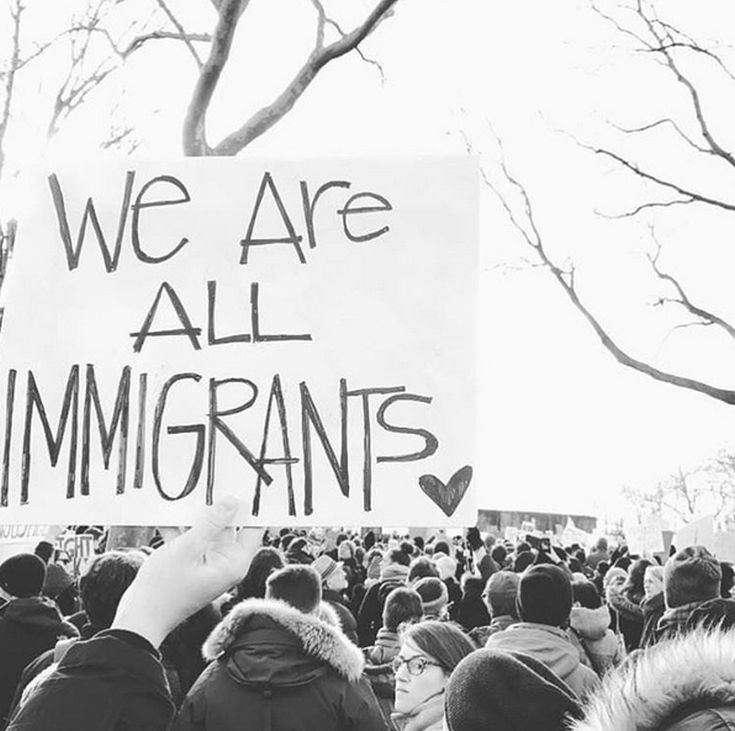Το μήνυμά της συνοδεύεται από μια φωτογραφία, όπου διαδηλωτές κρατούν ένα πανό στο οποίο αναγράφεται στο σύνθημα: «Είμαστε όλοι μετανάστες».